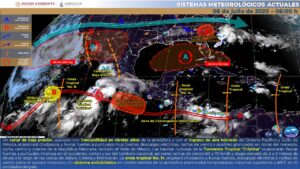 Viento con rachas de 50 a 60 km/h: Golfo de California, Sonora, Chihuahua, Coahuila, Nuevo León, Tamaulipas, Campeche y Yucatán.