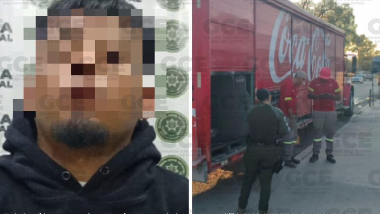 San Luis Potosí, S.L.P. — La reacción inmediata de elementos de la Guardia Civil Estatal (GCE) permitió la detención de un presunto ladrón de transporte de carga, luego de que fuera sorprendido conduciendo un camión refresquero que había sido robado minutos antes en la capital potosina.