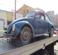La primera unidad fue localizada en calle Guadalupe Vega Macías y Sociedad Obrera, Unidad Habitacional Fidel Velásquez, se trata de un V.W., tipo sedán, color azul, modelo 1987. Tiene reporte de robo del 18 de octubre de 2017, en el Barrio del Montecillo. Fue hallado sin equipo de sonido, ni acumulador ni la defensa trasera.