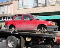 Por último, en la Primera Privada de Grito de Dolores y calle Grito de Dolores, en l colonia Santa Fe, se aseguró un Nissan, tipo Tsuru, modelo 2000, color rojo, con placas de San Luis Potosí. Al revisar con la base de datos del Centro de Control, Comando, Comunicaciones y Cómputo (C-4), se informó que tiene reporte de robo del 21 de octubre de 2017. Fue hallado sin los cuatro neumáticos, los asientos, sin estéreo ni acumulador.