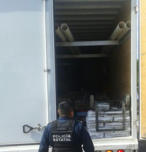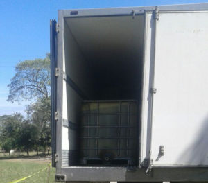 Al ingresar al terreno, los Policías encontraron un vehículo TermoKing, International, color blanco, con placas del estado Nuevo León. Al interior de la caja, fueron localizados ocho contenedores de mil litros cada uno, llenos con un líquido con las características del hidrocarburo.