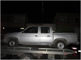 Al realizar recorridos de vigilancia en el Fraccionamiento San Leonel, Policías Estatales tuvieron contacto visual con una persona que conducía un vehículo Nissan Pickup, doble cabina, modelo 2006, color gris con placas de San Luis Potosí, mismo que al ver a los Policías trató de evadirse del lugar, por lo que se le marcó el alto para una inspección.