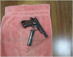Resultó que al conductor identificado como José B., de 36 años de edad, se le encontró un arma de fuego en el tapete de la parte trasera izquierda del vehículo, misma que se encontraba abastecida con nueve cartuchos útiles.
