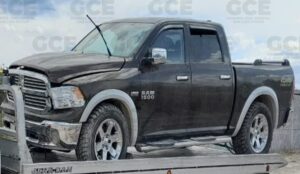 Dentro del despliegue operativo efectuado sobre la calle Hidalgo, los uniformados Estatales ubicaron una camioneta marca Dodge, tipo Ram, color café, sin placas y tras consultar el estatus de la unidad, se depusieron a asegurarla, ya que contaba con reporte de robo en el mes de agosto del año 2021.