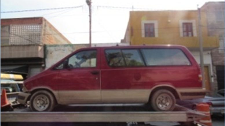 La primera unidad fue encontrada en las calles Benigno Arriaga y Cañaveral, en la colonia Rivas Guillén Quinto Plano. Se trata de un Ford Aerostar, modelo 1992, color vino, sin placas de identificación, mismo que cuenta con reporte de robo del 16 de abril de 2017. Fue hallado sin equipo de sonido, acumulador y con desorden al interior.