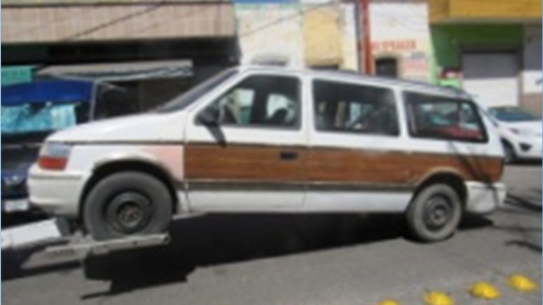 La primera unidad fue localizada en Avenida México y Santa Catarina, en la colonia San Felipe. Se trata de un Dodge Grand Caravan, color blanco, modelo 1993, sin placas, el cual cuenta con reporte de robo sin violencia del 10 de abril de 2017.