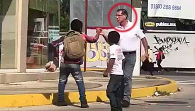 En el video se observa cómo el hombre, bautizado en redes sociales como #LordFuncionario, grita y jalonea al niño con el objetivo de arrebatarle la mercancía que vendía; por lo que el menor gritó que lo estaban asaltando.