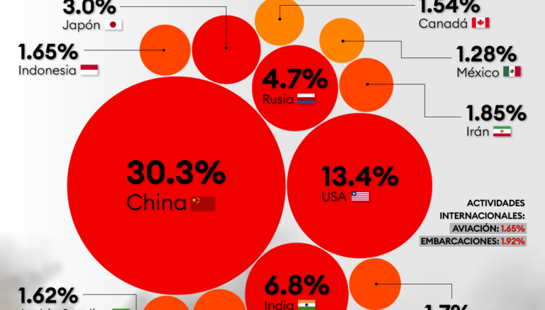 China, Estados Unidos, India y Rusia son los países que más contaminan, pues emiten 55% del CO2 mundial. Te compartimos el ranking completo a continuación.