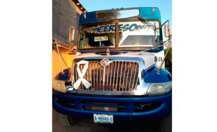 También, al frente de su autobús, en la rejilla, colocó un moño blanco en honor y agradecimiento a todo el sector salud por la labor que están realizando.