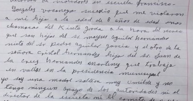 La madre de la menor narra en un escrito lo ocurrido a su hija en la escuela primaria Francisco González Bocanegra, en donde ya presentó su queja sin tener respuesta por parte de los directivos quienes no le creyeron tal situación.