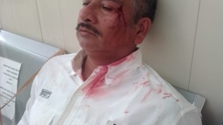 La mañana de hoy un hombre quien se ha venido manifestado frente a palacio municipal por las presuntas irregularidades del alcalde de ese municipio fue agredido por familiares del edil a quien después de golpearlo le dispararon amenazando de matarlo si seguía manifestándose .