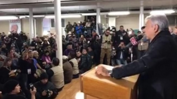 Un grupo de manifestantes obligó al precandidato presidencial de Morena, Andrés Manuel López Obrador, a acortar un encuentro con migrantes que se realizó esta tarde en esta ciudad estadounidense.