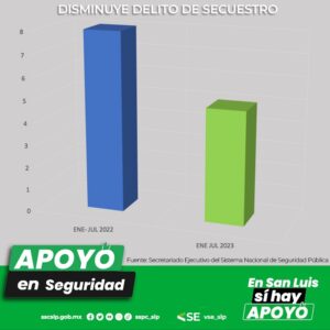 La Vocería de Seguridad del Estado de San Luis Potosí (VSE) ha anunciado que, gracias a la implementación de la Estrategia Integral de Seguridad Pública respaldada por el Gobierno estatal, la entidad ha experimentado una disminución sustancial en los índices de incidencia delictiva durante los primeros siete meses del año 2023. En comparación con el mismo período del año anterior, las cifras recopiladas por el Secretariado Ejecutivo del Sistema Nacional de Seguridad Pública (SESNSP) muestran una disminución del 37% en los casos de secuestro, un descenso del 22% en los homicidios dolosos, así como una reducción del 21% en los robos de automóviles y del 37% en los robos a transporte público individual.