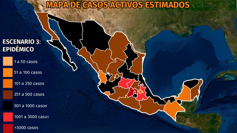 De acuerdo con la actualización del documento técnico consultada en el sitio web de la dependencia federal de salud, se muestra que las entidades con mayor número de casos activos de SARS-CoV-2 en orden descendente son: la Ciudad de México, Estado de México, Guanajuato, Querétaro y Puebla, entidades con más de 1,000 casos activos y que en conjunto concentran el 62% de los casos activos del país.