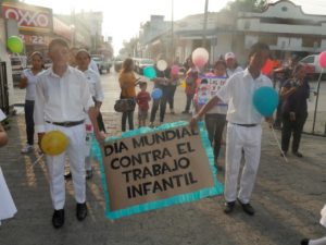 El Sistema Municipal para el Desarrollo Integral de la Familia de Ciudad Valles llevó a cabo este lunes por la mañana una marcha, de la Glorieta Hidalgo a la Plaza Principal, con personal de los Centros de Desarrollo Comunitario y alumnos de la escuela primaria “Francisco Zarco” como parte de las acciones de promoción de este 12 de junio Día Mundial de la Lucha contra el Trabajo Infantil.