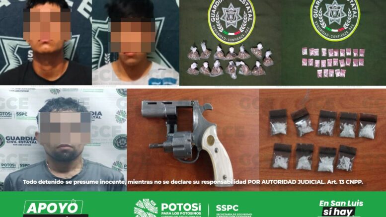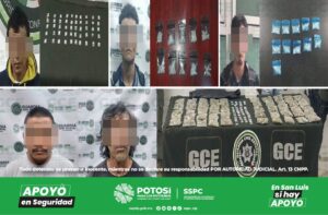 S.L.P.- Trabajos de inteligencia, desplegados en la capital y el interior del estado por agentes de la Guardia Civil Estatal (GCE) permitieron detectar y detener a ocho supuestos narcomenudistas en las últimas horas; con ello se logró asegurar más de 200 dosis de estupefacientes del mercado negro, inhibiendo así que llegara hacia la población potosina, especialmente a las y los jóvenes.