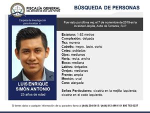 Policías estatales y municipales de Axtla encontraron el cuerpo sin vida de Luis Enrique Simón Antonio de 25 años de edad, quien había sido reportado como desaparecido el pasado 7 de noviembre en el ejido Picholco del municipio de Axtla.