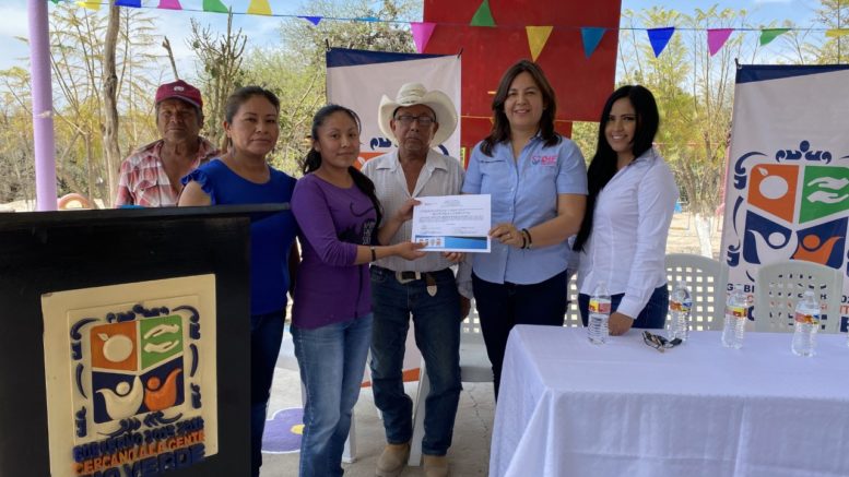 Fué la Presidenta del Sistema Municipal para el Desarrollo Integral de la Familia, Rosa Isela Konishi Romero, quien acudió hasta este poblado, en representación del Alcalde, José Ramón Torres García, para hacer la entrega del material, consistente en 450 blocks, 20 sacos de cemento y 4 armex, en cuya adquisición se aplicó una inversión por la cantidad de 10 mil 810 pesos.