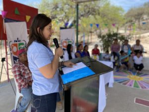 La Presidenta del DIF Municipal, Rosa Isela Konishi Romero, refirió en su mensaje que de esta forma el Gobierno Municipal, se encuentra brindando atención a una de las necesidades que se tenía en esta institución, buscando con ello beneficiar a todos los niños y niñas que merecen contar con una escuela de calidad, acorde con la educación que aquí se imparte.
