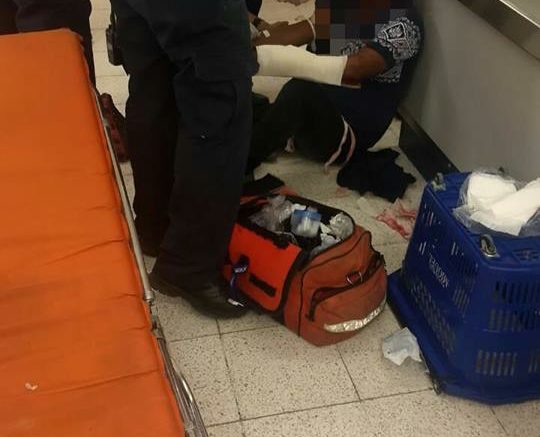 En el lugar se encontró a un hombre sangrando abundantemente producto de un machete en la mano izquierda, motivo por el cual fue necesaria la presencia de paramédicos ya que el sangrado era abundante.