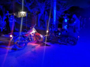 La noche del domingo un hombre que tripulaba una motocicleta invadió el carril contrario y se impactó de frente contra otra motocicleta en el lugar hay dos lesionados .