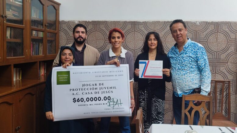 “MOVIMIENTO LIBERTARIO MEXICANO ENTREGA APOYO ECONOMICO A CASA DE JESÚS”