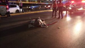 El infortunado falleció de manera instantánea, cruzó a la altura de la agencia de autos Nissan por el rumbo de lo que era la antigua central de autobuses, fue atropellado por un auto que se dio a la fuga con dirección del distribuidor vial Benito Juárez al Puente Pemex.
