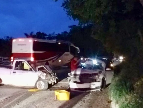 El choque se registró en la carretera federal Valles-Tamazunchale, a escasos metros del parque acuático Coy, la noche del lunes.