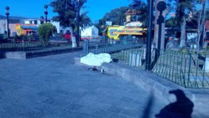 El cuerpo del hoy occiso quedó recostado sobre una banca de cantera desde esta madrugada hasta que hoy por la mañana fue visto por peatones los cuales dieron aviso a las autoridades correspondientes.