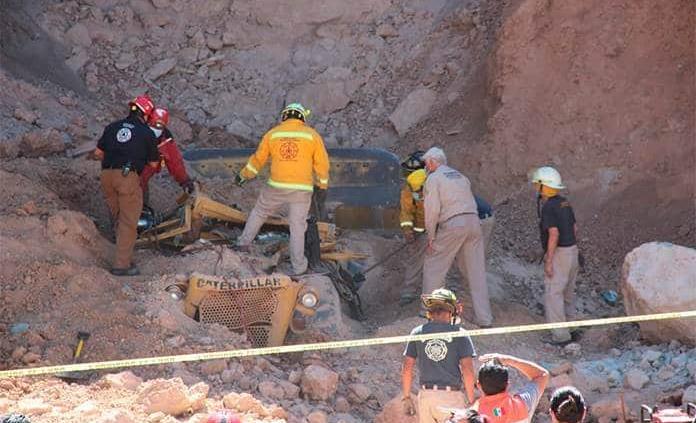 Personal de Protección Civil Estatal y del Cuerpo de Bomberos, se coordinaron para el rescate del cuerpo del infortunado, que fue sepultado por arena cuando la extraía en el Periférico Norte, a la altura del puente de Peñasco.