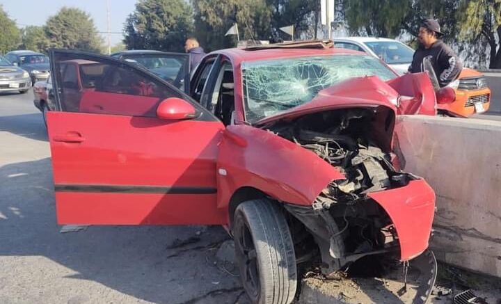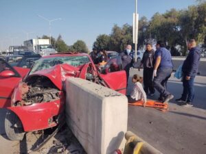 La mañana una mujer chocó en la contención de un Puente en periférico por la empresa Pilgrims, la conductora y su hijo de cuatro años resultaron lesionados, el auto fue pérdida total.