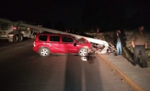 El parte informativo detalla que los hechos se registraron al filo de las 03:20 AM en avenida Turquesa próximo a la calle de Topacio frente a Industrias Químicas de México, de acuerdo con el peritaje la conductora de una Jeep Patriot se desplazaba a exceso de velocidad y perdió el control.
