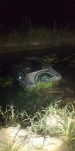 La madrugada de hoy una mujer se accidentó al perder el control de su vehículo y cae canal de la media luna,