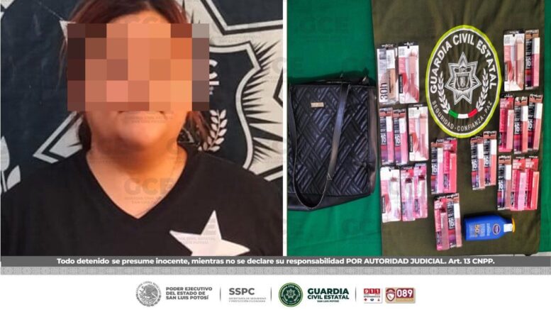 Ciudad Valles, S.L.P.- Una alerta recibida en la Línea de Emergencias 911, permitió que oficiales de la Guardia Civil Estatal (GCE) detuvieran a una mujer, quien presuntamente pretendió huir con varios productos cosméticos de un supermercado, sin embargo fue detenida sin lograr consumar el robo.