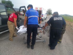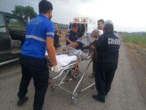 Solicitando el apoyo de la ambulancia de Ciudad Fernández. La mujer fue trasladada a recibir atención médica al Hospital Regional de Rioverde, donde se reporta su estado de salud delicado.