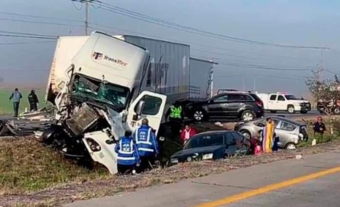 Una carambola de vehículos se registra en la carretera federal 57, a la altura de la comunidad de Calamand, municipio de El Marqués, lo que mantiene cerrada la circulación con dirección a Querétaro.