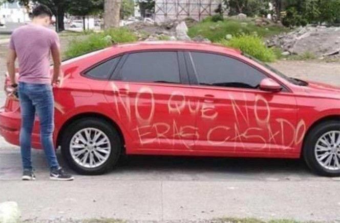 CIUDAD DE MÉXICO.- A través de redes sociales se difundió la imagen del supuesto precio que tuvo que pagar un sujeto por engañar a una mujer. Sí, “supuesto” debido a que en la nube sólo se subieron imágenes de un auto con la leyenda: “No que no eras casado” y la imagen de un cerdo en uno de los costados de un automóvil color rojo.