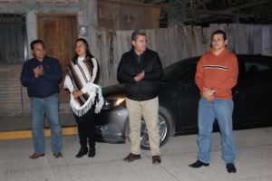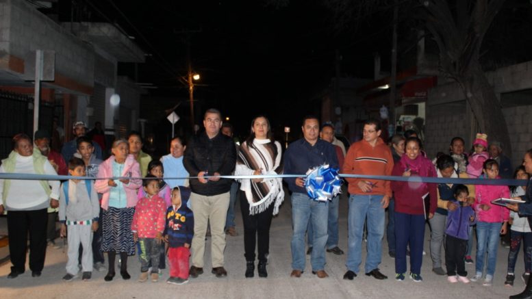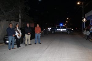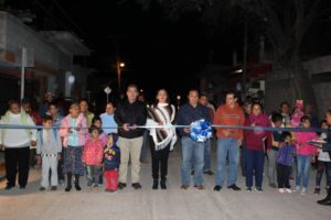 El Alcalde José Ramón Torres García, acompañado de la Presidenta del Sistema Municipal para el Desarrollo Integral de la Familia, Rosa Isela Konishi Maldonado, así como del Coordinador de Desarrollo Social, Daniel Nieto Caraveo; realizó primeramente la entrega oficial de la rehabilitación con concreto hidráulico de la calle Porfirio Díaz, en su tramo de Dren El Carmen a Cadenamiento 0+200.