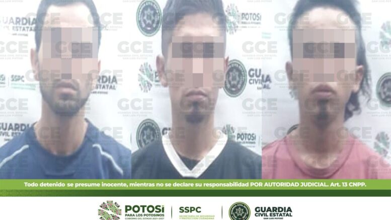 SAN LUIS POTOSÍ, S.L.P.- A efecto de disminuir los hechos constitutivos del delito y preservar la paz en el sector Norte de la Capital, Policías de la Guardia Civil Estatal (GCE) llevaron a cabo la detención de tres masculinos por presunta posesión de 20 dosis de “cristal”.