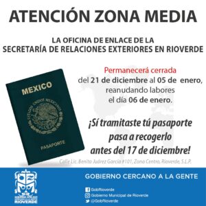 OFICINAS DE ENLACE CON LA SECRETARIA DE RELACIONES EXTERIORES ESTARÁN CERRADAS DEL 21 DE DICIEMBRE AL 05 DE ENERO