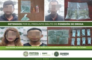 S.L.P.- Como resultado de los operativos de seguridad y vigilancia implementados en los diferentes sectores de la ciudad y al interior del Estado, 8 personas resultaron detenidas por el presunto delito de posesión de droga.