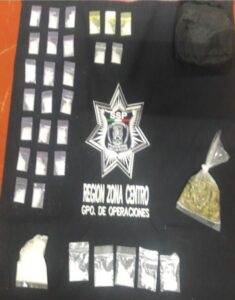 En la calle Primera Privada de Constitución en la colonia Julián Carrillo, es detenido Ernesto de 40 años de edad, por la posesión de 31 bolsas de cristal con un peso de 35 gramos y 11.9 gramos de marihuana.