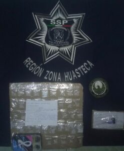 Por último, en la Zona Huasteca en el Municipio de Tamuín, elementos del Grupo Especial al desarrollar tareas preventivas sobre la avenida principal en la colonia Del Campo detienen a Fernando de 39 años de edad con 50 bolsitas de nylon transparente conteniendo cristal con un peso total de 16 gramos.