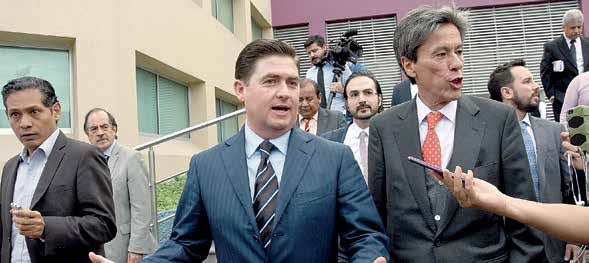 Medina de la Cruz acudió a la audiencia realizada en el Palacio de Justicia de Monterrey acompañado de su defensa, integrada por el ex Procurador General de Justicia del Estado, Javier Flores, el penalista Alonso Aguilar Zinser y un grupo de abogados asistentes.