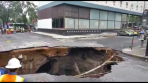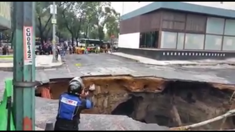 Esta mañana se registró un hundimiento de al menos seis metros de diámetro en la Ciudad de México en la intersección de las calles Cristobal Colón y Humbolt.
