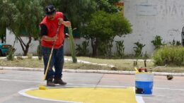 Personal de Servicios Municipales trabaja en el área verde y cancha de la Colonia Morales; así como en el espacio…