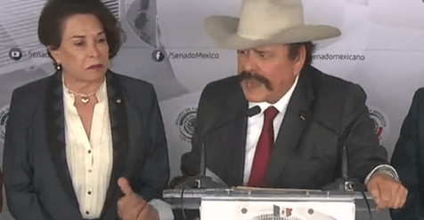Ante la molestia de Guadiana, la senadora Galaz lo tomó del brazo para tranquilizarlo y alejarlo del micrófono.