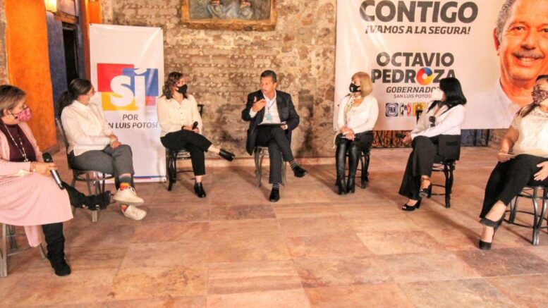 El candidato a la gubernatura de la Coalición “Sí por San Luis Potosí”, -PAN-PRI-PRD-PCP-, Octavio Pedroza Gaitán, participó enel “Conversatorio Sí por las Mujeres”, moderado por Martha Orta Rodríguez, secretaria de Promoción Política del Comité Directivo Estatal del Partido Revolucionario Institucional (PRI), en el que cinco mujeres exitosas en diferentes ámbitos como la academia, la cultura, el deporte y el activismo social aportaron propuestas y dieron su testimonio.