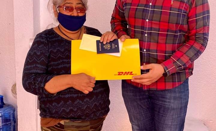 Por indicaciones del alcalde Arnulfo Urbiola Román, el departamento de Atención al Migrante y Enlace Internacional a cargo de Ismael Saldaña, entregó a la señora Gloria Bautista el pasaporte americano de emergencia para una de sus hijas.