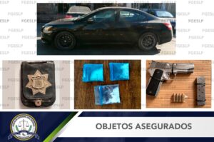 SLP. – Agentes de la Policía de Investigación (PDI) realizaron la detención en flagrancia de tres sujetos, quienes se encontraban en posesión de un arma de fuego y algunas dosis de droga, esto en el municipio de Soledad de Graciano Sánchez, informó la Fiscalía General del Estado de San Luis Potosí (FGESLP).